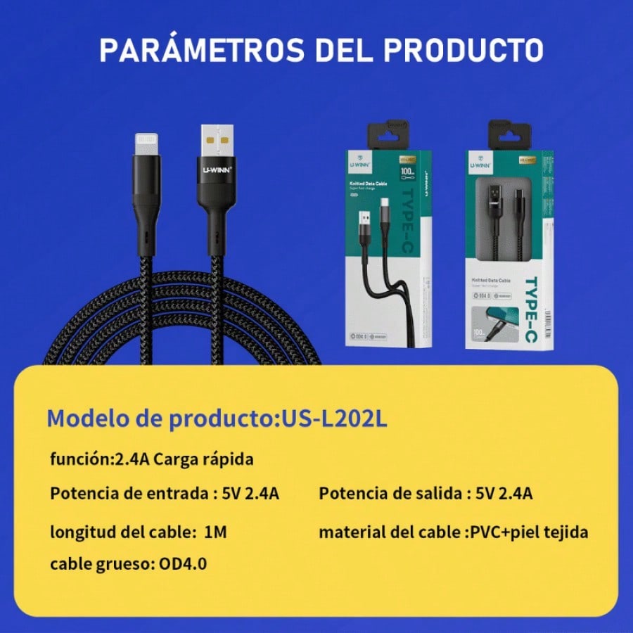 Diseñado con conector Lightning y potencia de carga de 2.4A. Integra 4 núcleos internos para transferencias de 480 Mbps. Este cable de 1 metro, fabricado en PVC y Nailon Trenzado, ofrece un rendimiento confiable y duradero.