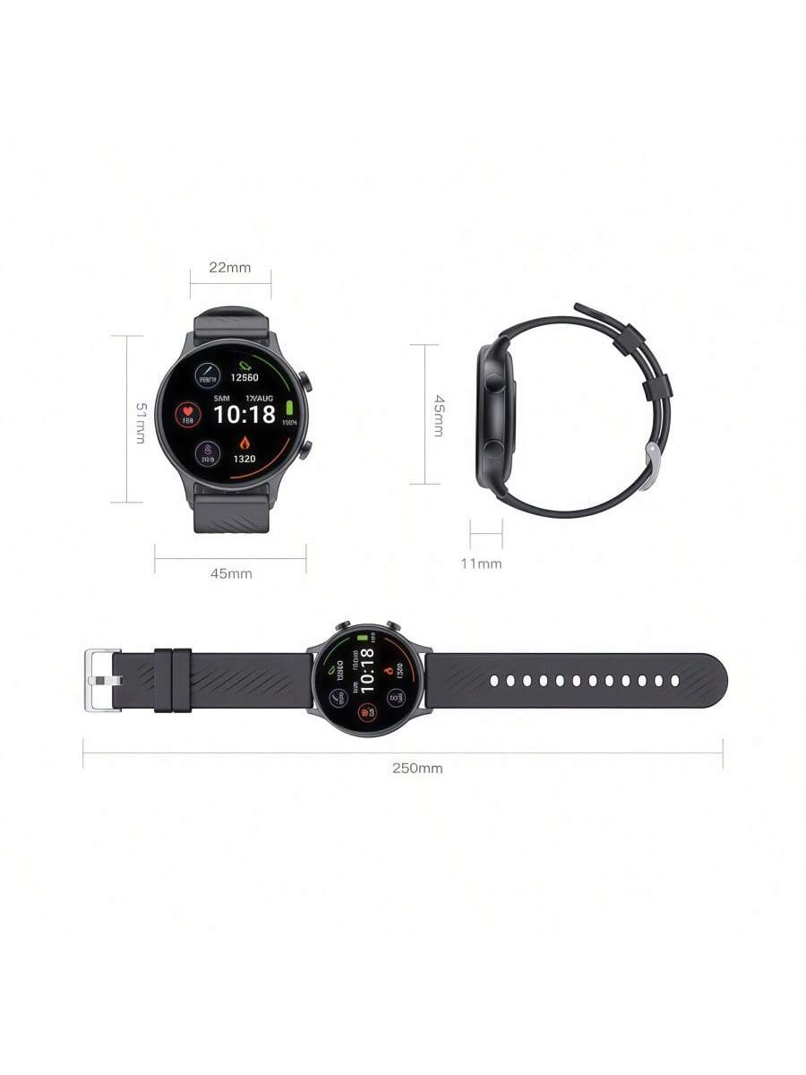 Reloj deportivo inteligente de color negro con pantalla táctil redonda Retina, impermeable IP68 para llamadas, 100 modos