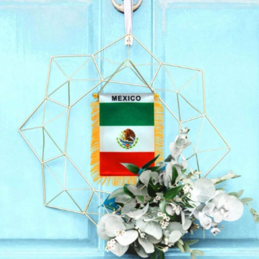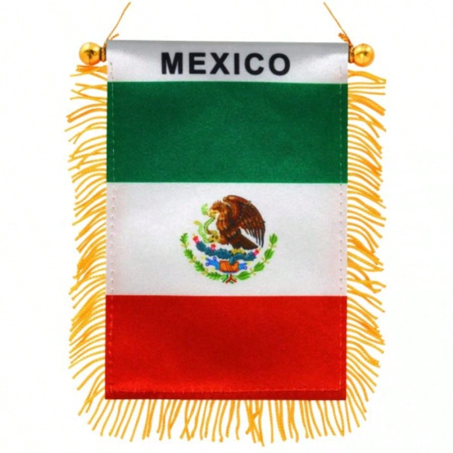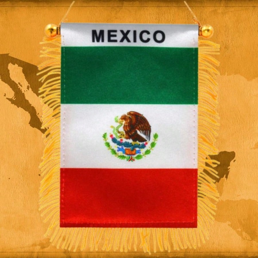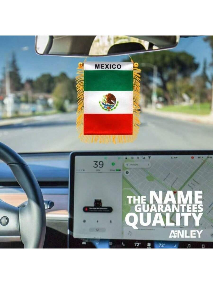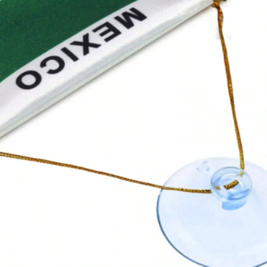 Personaliza el interior de tu vehículo con esta mini bandera de México diseñada específicamente para colgarse del espejo retrovisor. Este accesorio decorativo resalta por sus colores vibrantes y sus detalles de flecos dorados en los bordes que le aportan un estilo distinguido. Cuenta con un cordón que facilita su colocación inmediata en cualquier tipo de auto, camioneta o camión. Es el adorno ideal para mostrar orgullo nacional o para dar un regalo significativo, manteniendo una estética clásica y llamativa sin obstruir excesivamente la visibilidad al conducir.
