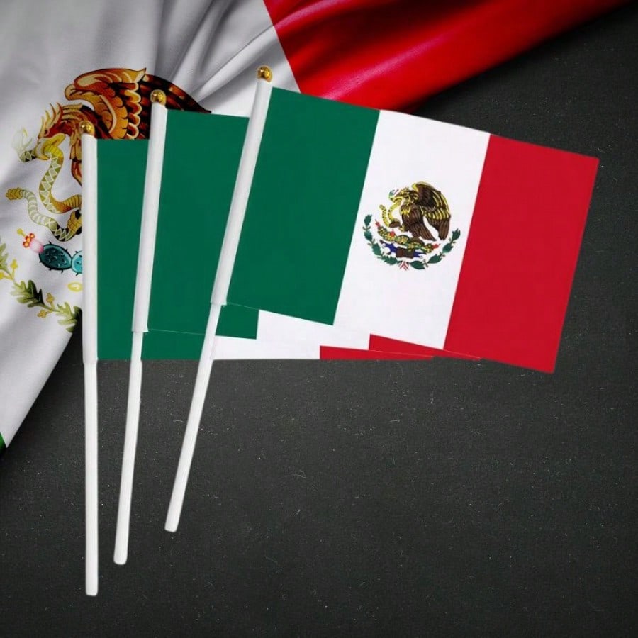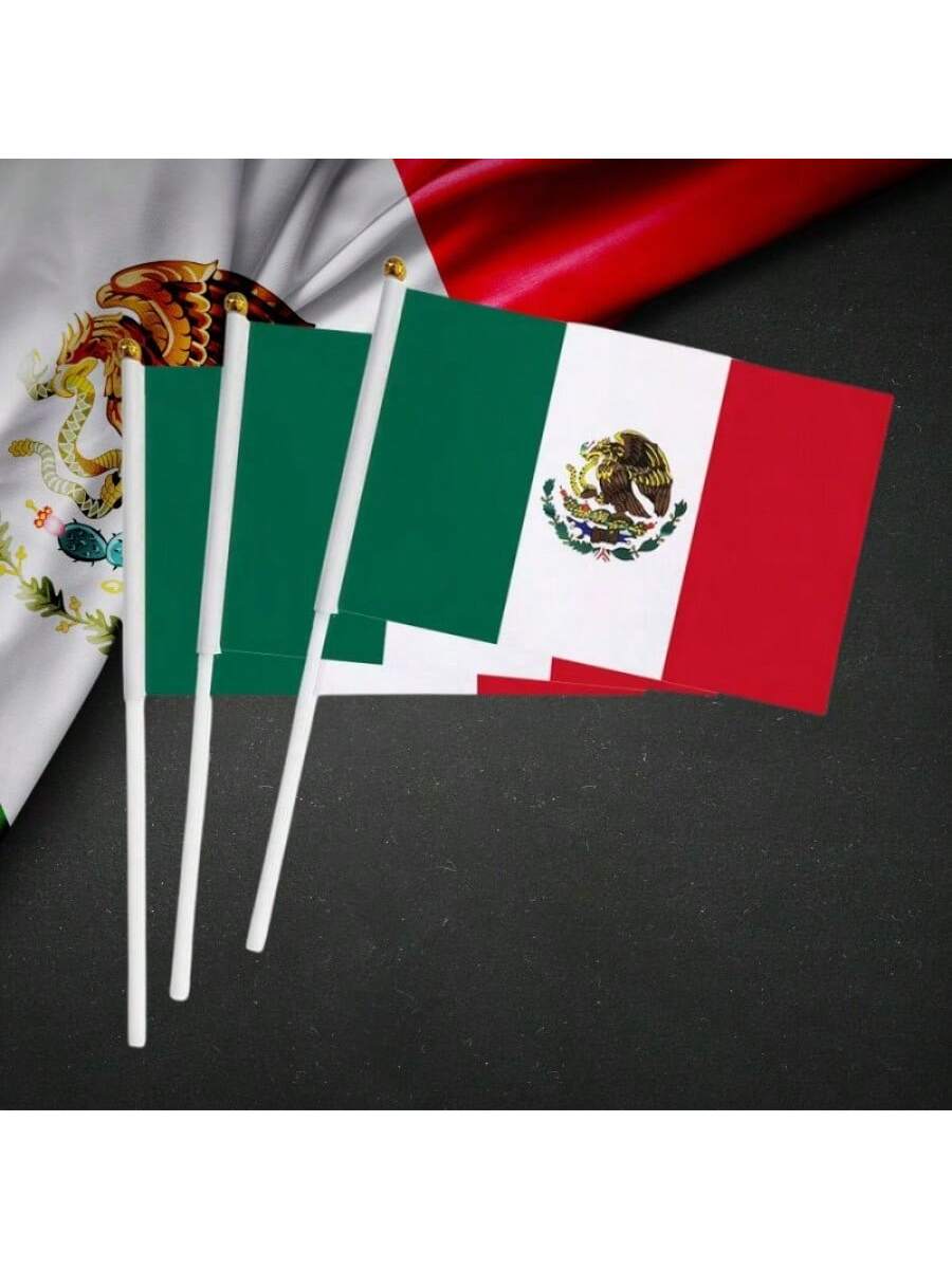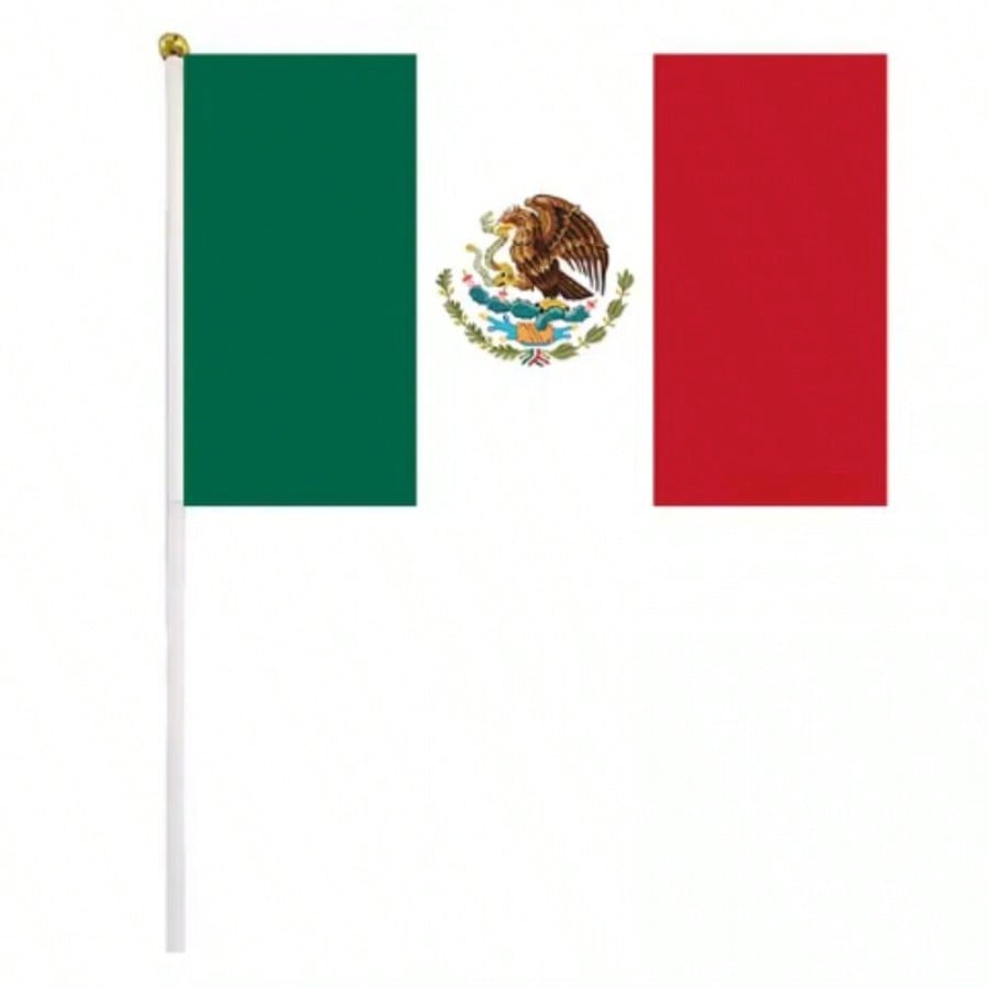 Anima cualquier celebración o evento deportivo con estas banderas de mano de México. Son el accesorio perfecto para agitar durante desfiles, fiestas patrias o para decorar escritorios y espacios pequeños. Cada bandera presenta los colores tradicionales verde, blanco y rojo junto con el escudo nacional, y viene montada firmemente sobre una varita ligera que facilita su agarre. Incluyen un pequeño detalle decorativo en la punta superior que mejora su presentación. Son ideales para repartir entre invitados, utilizar en actividades escolares o simplemente para mostrar tu apoyo a la selección nacional en todo momento.