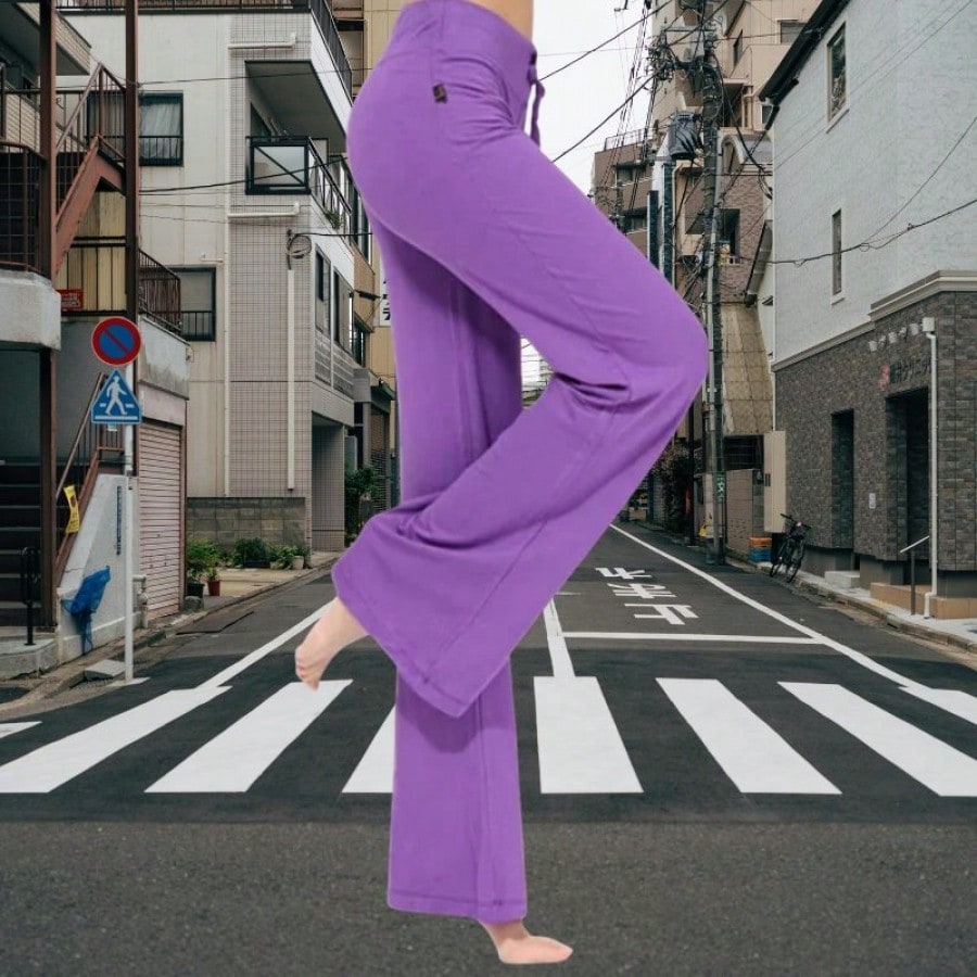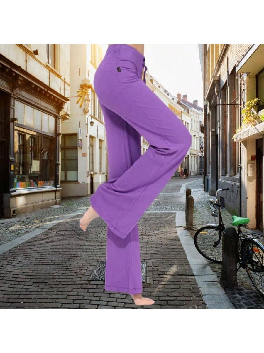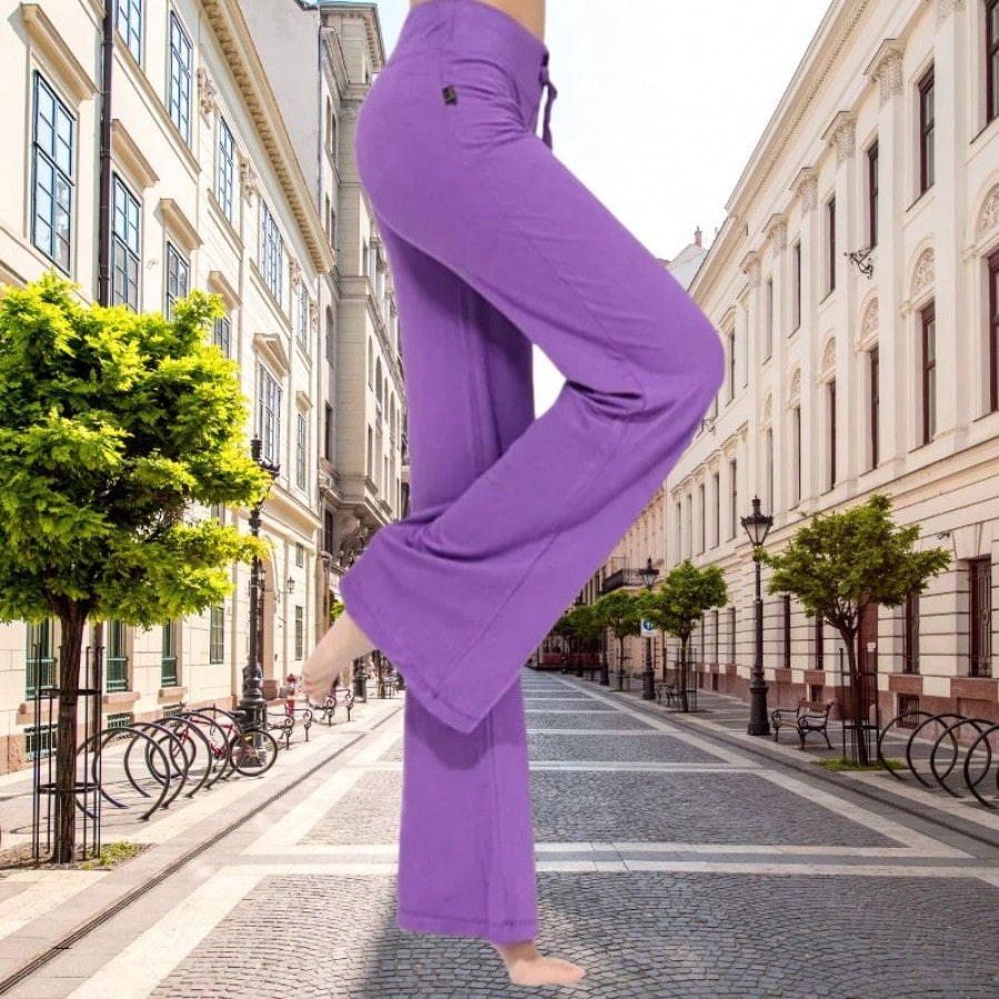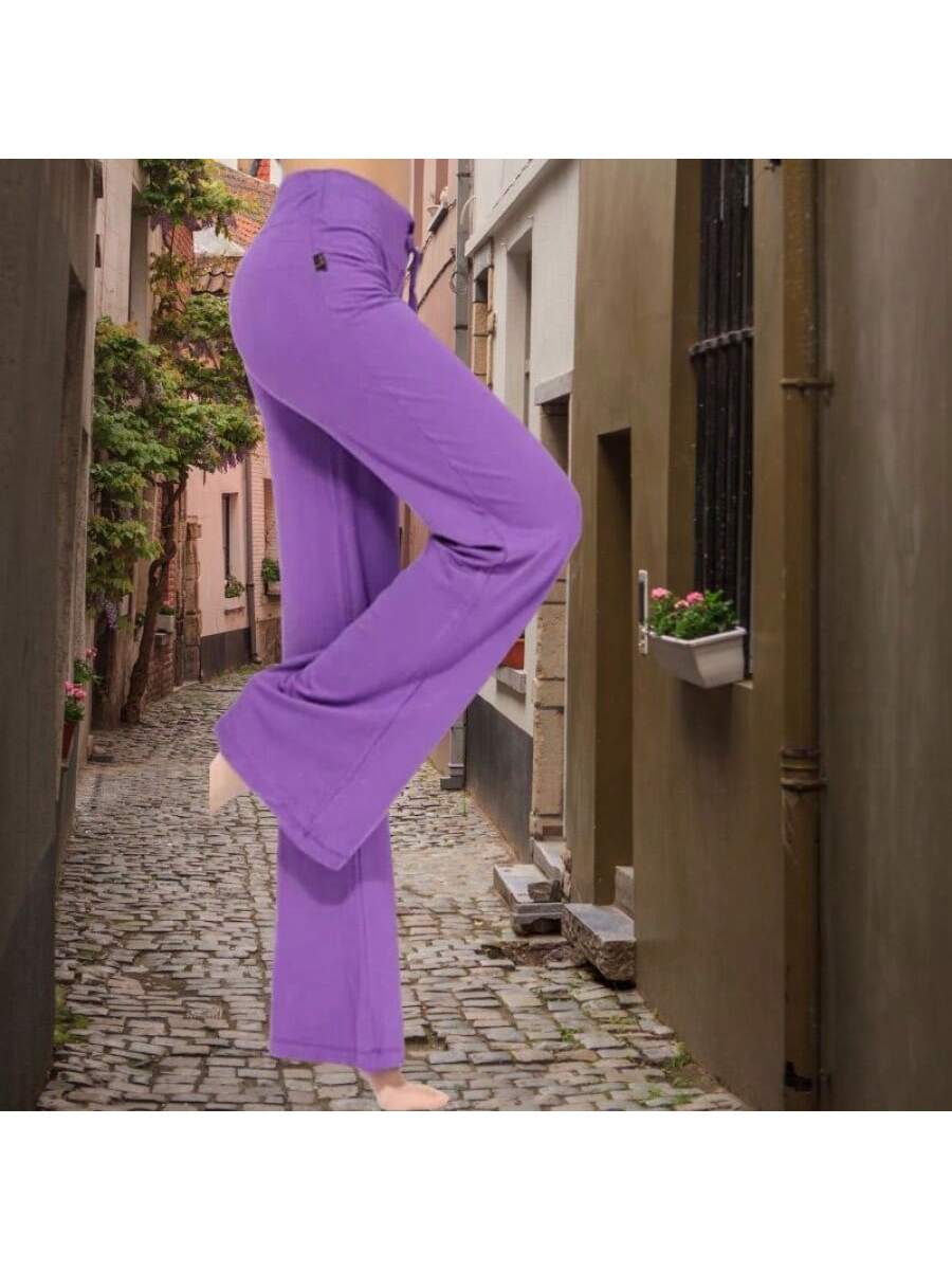 Disfruta de la máxima comodidad y libertad de movimiento con estos pantalones acampanados de color morado. Diseñados para ofrecer un ajuste relajado pero favorecedor, cuentan con un corte que se ajusta suavemente a la cadera y se ensancha hacia la parte inferior, estilizando la figura. Son ideales para practicar actividades de bajo impacto como yoga o pilates, así como para descansar en casa o realizar tus actividades diarias con un estilo casual. Su cintura proporciona un soporte suave sin apretar, asegurando confort durante todo el día. Disponible en talla XL, este pantalón es la combinación perfecta entre funcionalidad y moda relajada.