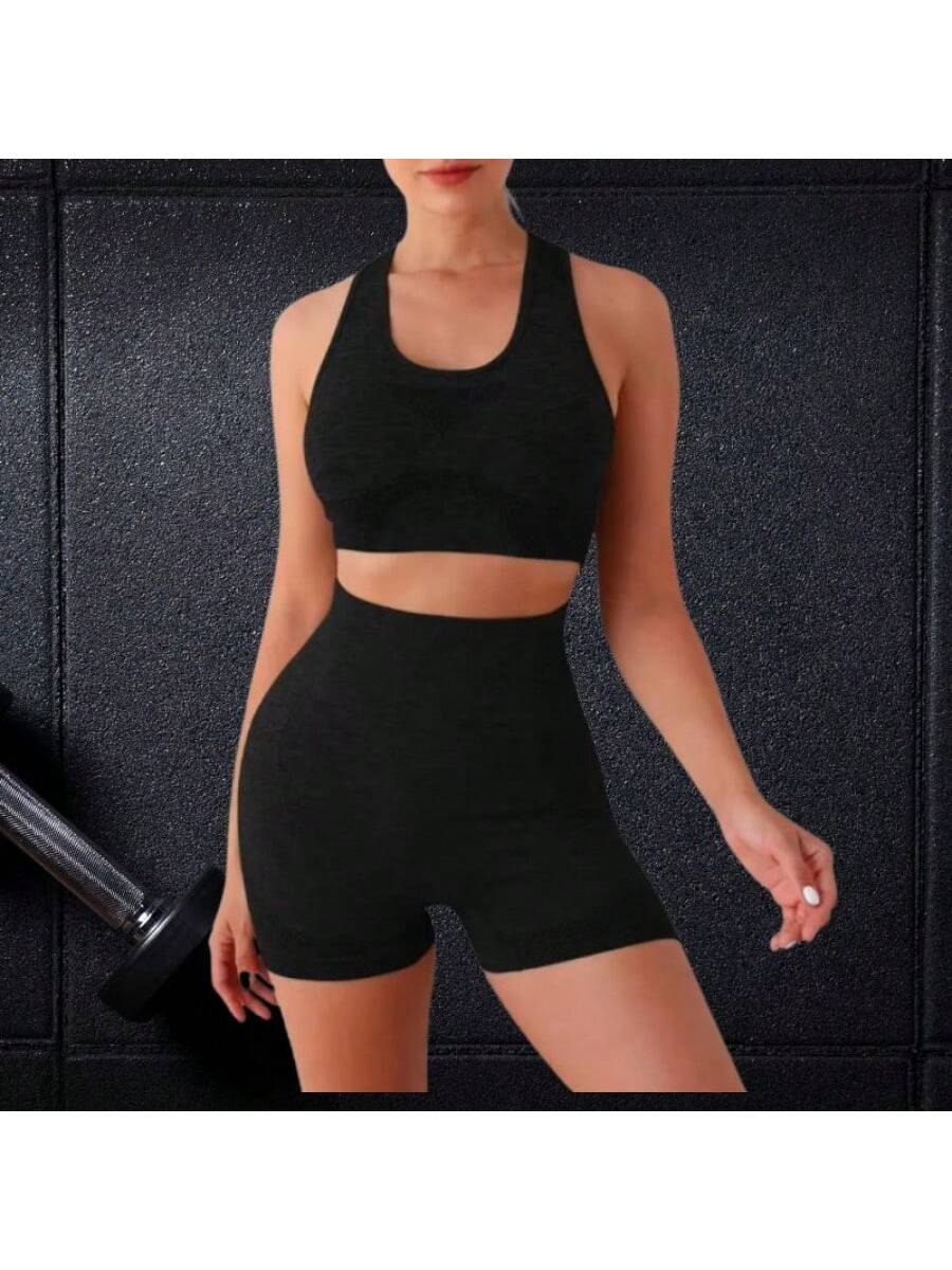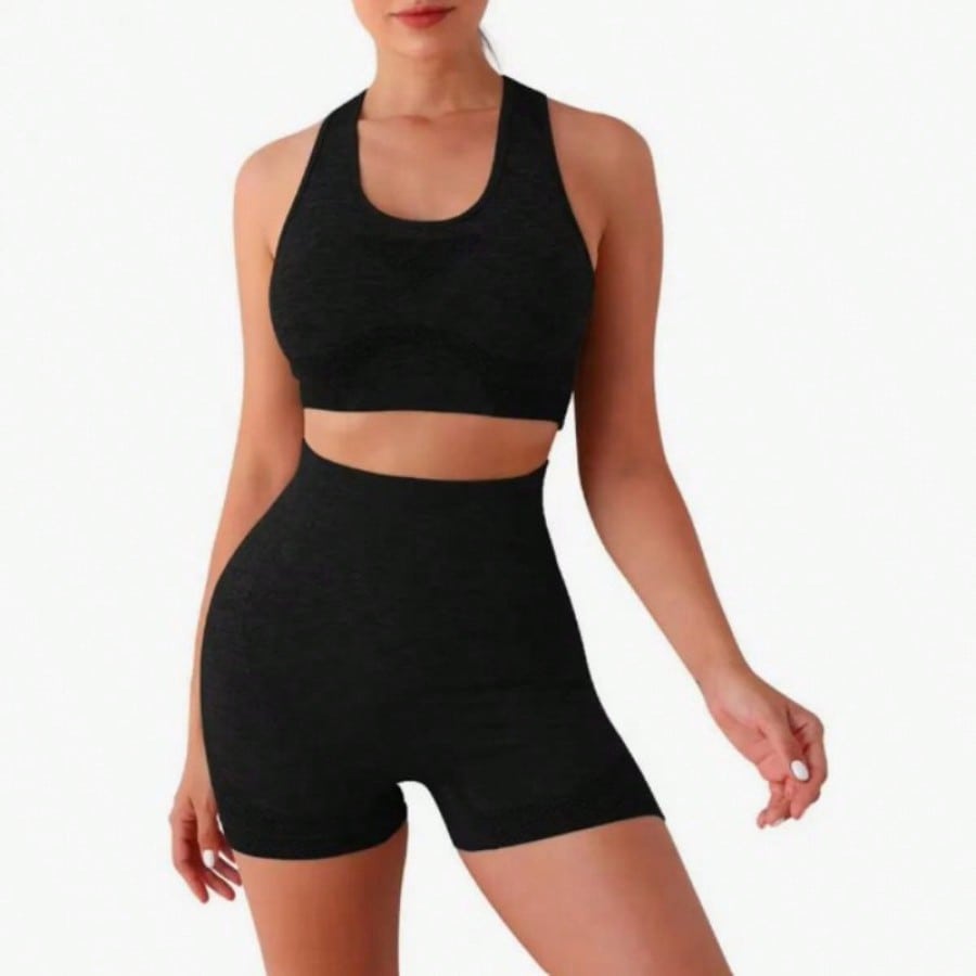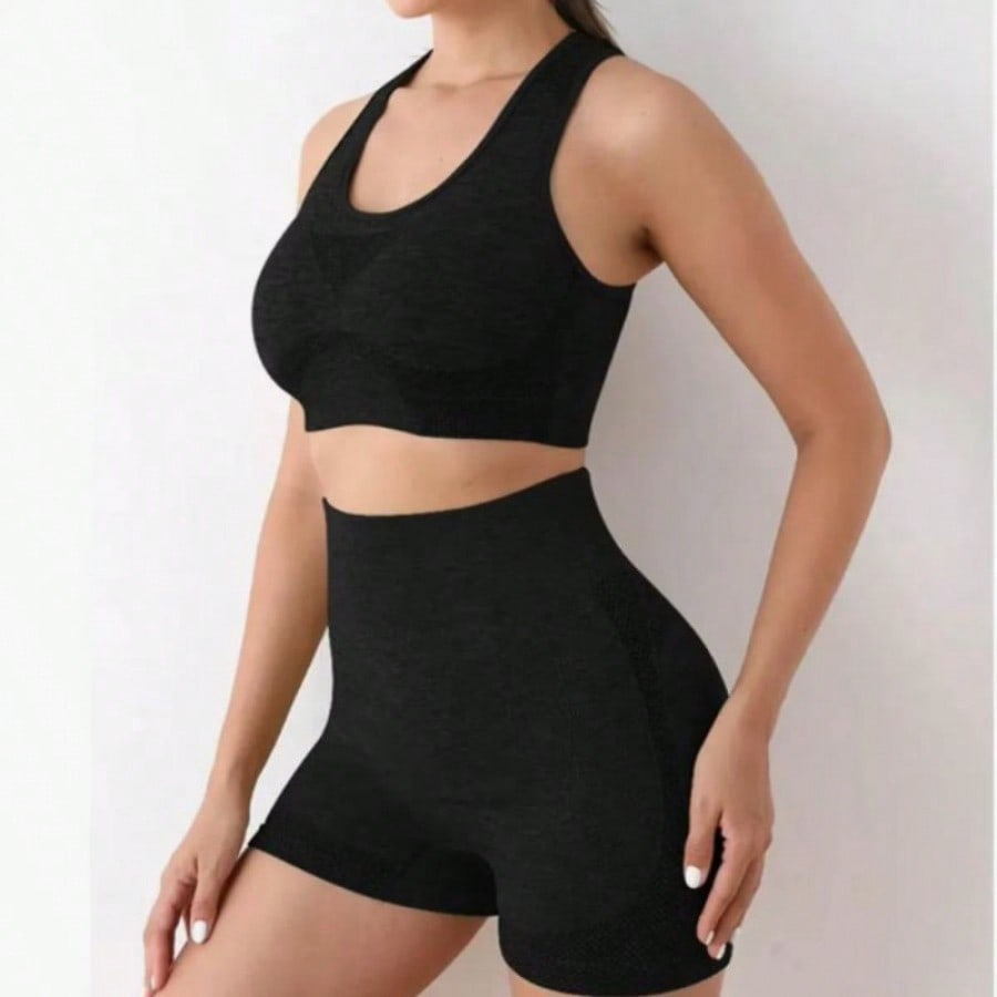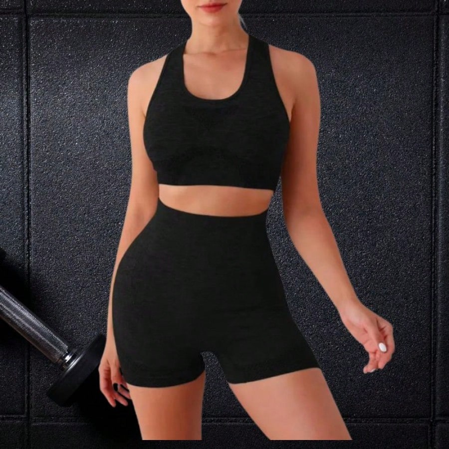 Entrena con estilo y comodidad gracias a este conjunto deportivo de dos piezas en color negro. El set incluye un top sin mangas de diseño ergonómico y unos shorts ajustados de cintura alta que favorecen la silueta y brindan soporte durante el movimiento. Su tejido elástico se adapta a diferentes tipos de cuerpo gracias a su talla única, permitiendo libertad total para realizar ejercicios como yoga, running o fitness en el gimnasio. Además de ser funcional para el deporte, su diseño moderno y minimalista lo hace ideal para usar como ropa casual relajada en días calurosos.