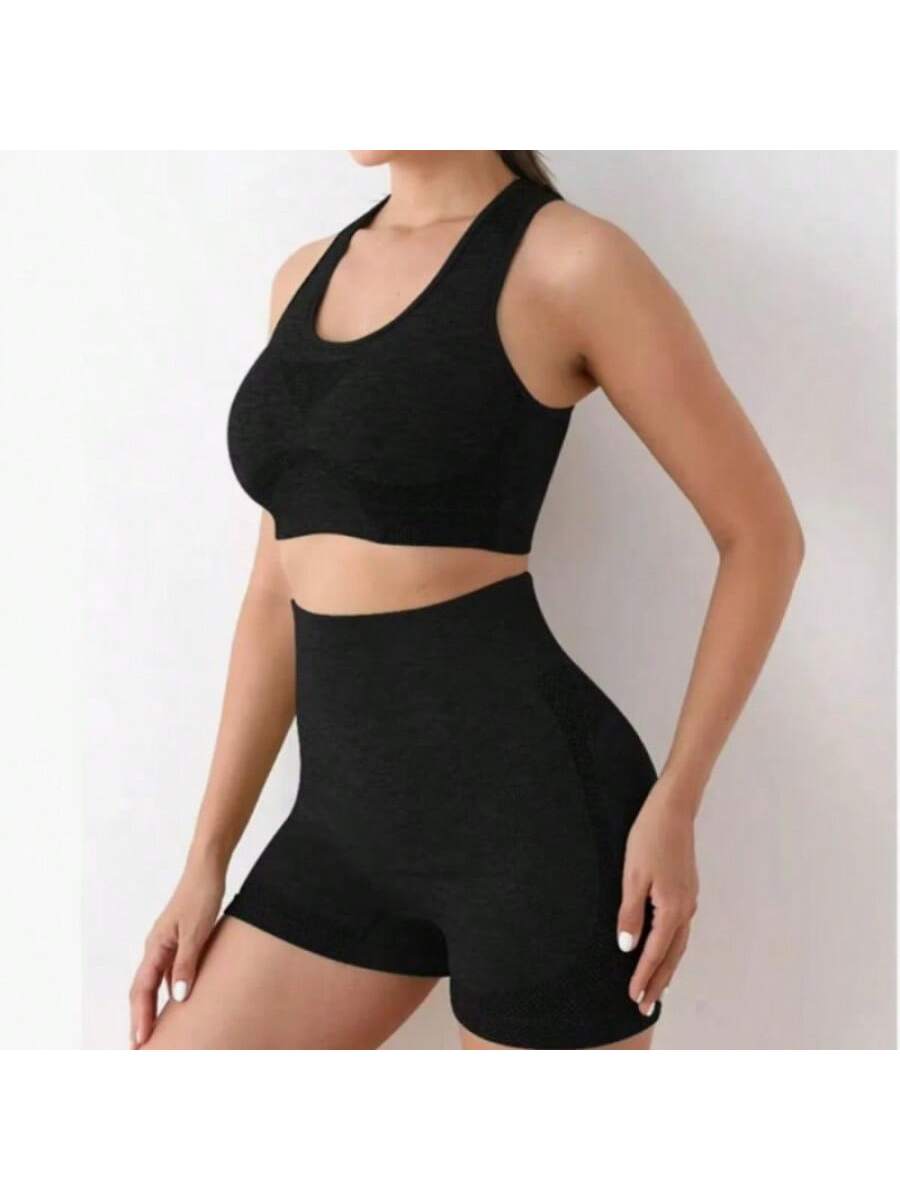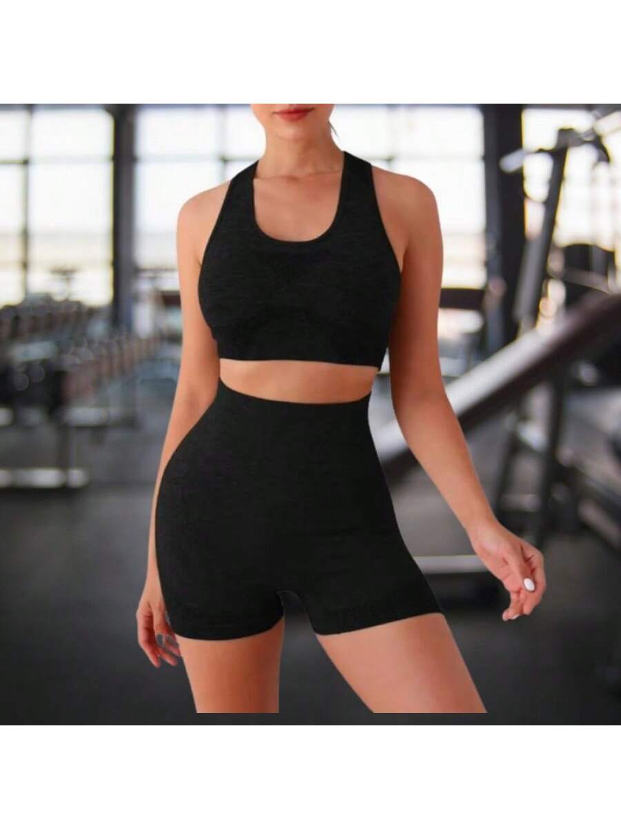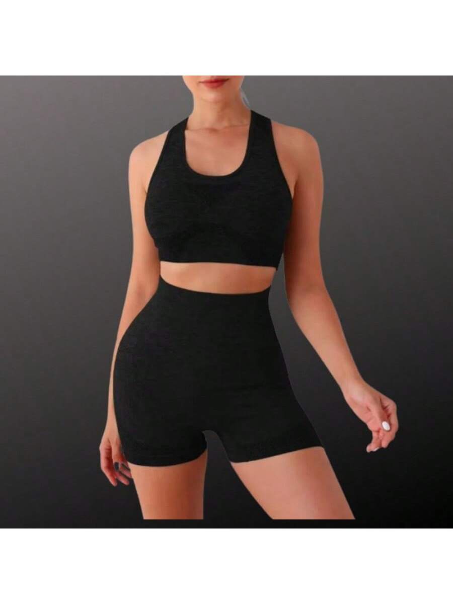 Entrena con estilo y comodidad gracias a este conjunto deportivo de dos piezas en color negro. El set incluye un top sin mangas de diseño ergonómico y unos shorts ajustados de cintura alta que favorecen la silueta y brindan soporte durante el movimiento. Su tejido elástico se adapta a diferentes tipos de cuerpo gracias a su talla única, permitiendo libertad total para realizar ejercicios como yoga, running o fitness en el gimnasio. Además de ser funcional para el deporte, su diseño moderno y minimalista lo hace ideal para usar como ropa casual relajada en días calurosos.