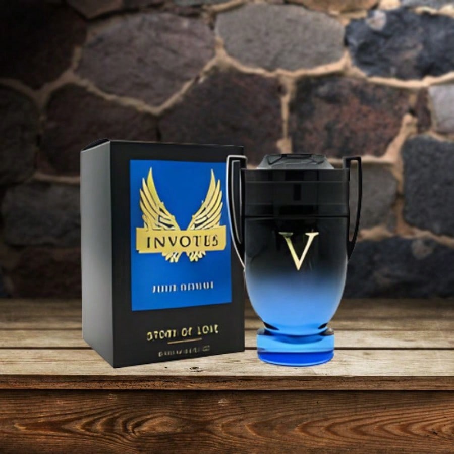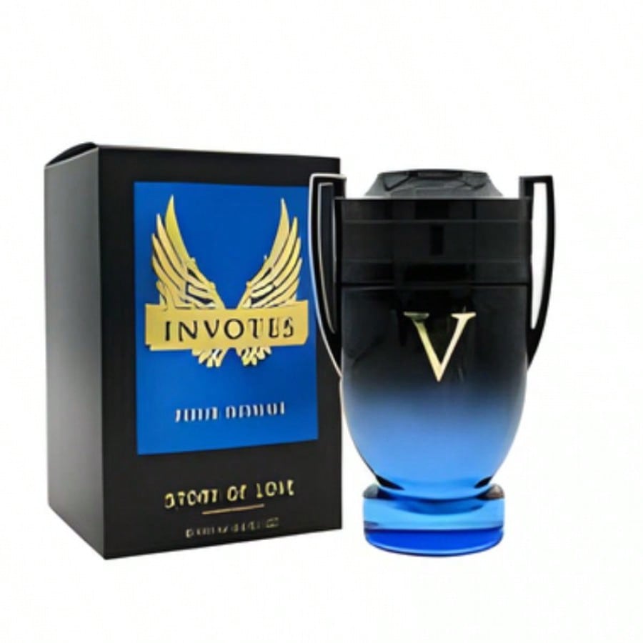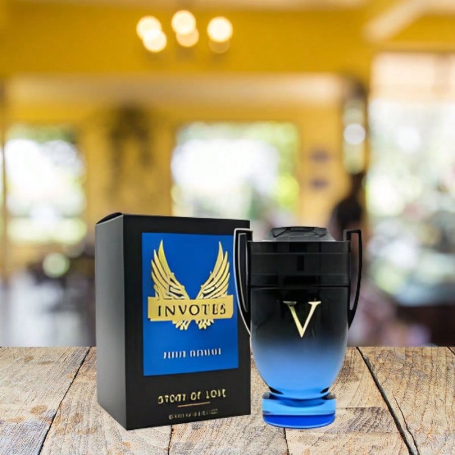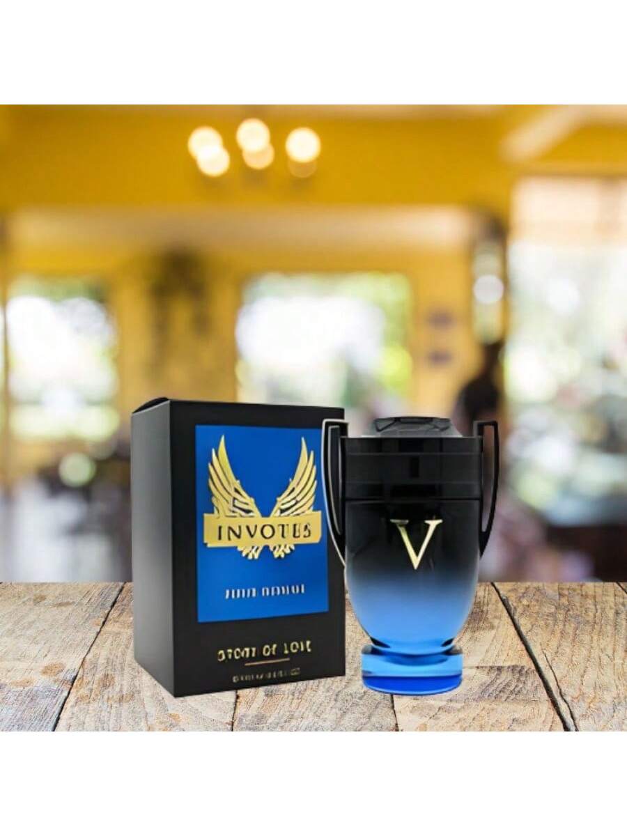 Eleva tu estilo con esta fragancia masculina de carácter intenso y duradero. Su composición olfativa es una poderosa mezcla que inicia con notas aromáticas frescas y especiadas, para asentarse en un fondo profundo y seductor de ámbar, vainilla y maderas preciosas. Es un perfume diseñado para dejar una estela memorable, ideal para ocasiones especiales o uso nocturno. Su presentación en un frasco con forma de trofeo, que exhibe un elegante degradado de negro a azul eléctrico con una "V" dorada en el centro, refleja victoria, energía y sofisticación moderna.