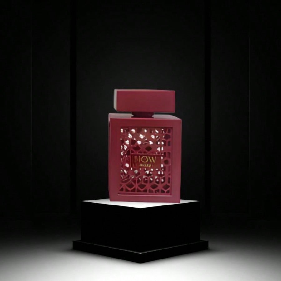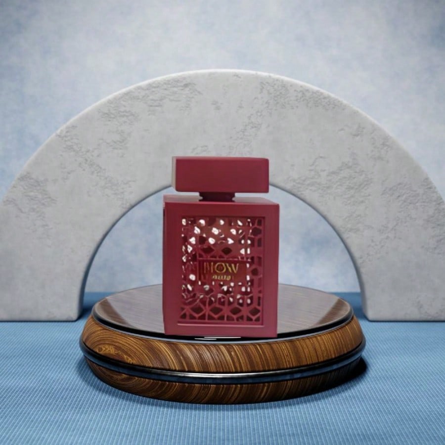 Enciende tus sentidos con esta cautivadora fragancia arabe para mujer de 100ml, diseñada para quienes buscan un aroma intenso y lleno de personalidad. Su composicion olfativa es una exquisita mezcla gourmand y frutal, donde predominan las notas dulces de frutos rojos y bayas silvestres, equilibradas con un toque cremoso y suave. El corazon revela matices florales sutiles y notas balsamicas, creando una estela misteriosa y elegante. El fondo de ambar y resinas asegura una duracion prolongada, perfecta para destacar en climas frescos o eventos nocturnos. El frasco, con su impresionante color rojo burdeos y un intrincado diseño geometrico en relieve, refleja pasion y lujo moderno. Es el accesorio ideal para la mujer audaz que desea expresar su estilo con un perfume unico y memorable.