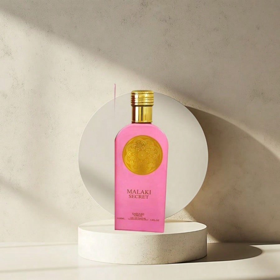 Descubre el secreto de la seduccion con esta exquisita fragancia arabe para mujer de 100ml. Su aroma es una vibrante combinacion de notas florales y frutales, diseñada para la mujer que irradia alegria y feminidad. La composicion abre con un toque dulce y fresco, evolucionando hacia un corazon de flores exoticas que cautiva los sentidos. El fondo suave y calido asegura una estela duradera y sofisticada. El envase es una verdadera joya visual, presentando una botella en color rosa intenso adornada con un lujoso medallon dorado con grabados estilo mandala, evocando la riqueza y el misterio de oriente. Es el regalo perfecto o el capricho ideal para quienes buscan un perfume que combine una estetica impactante con un aroma envolvente y moderno.