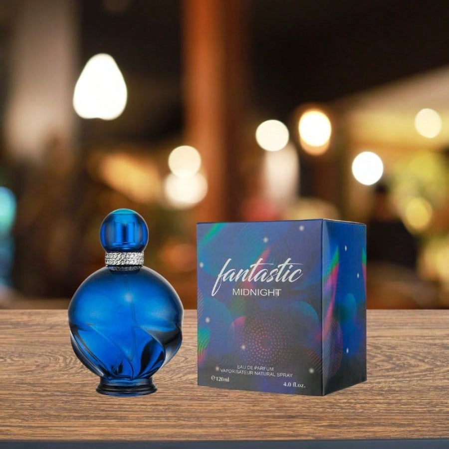 Dejate envolver por la magia de la medianoche con esta fragancia femenina de 100ml, diseñada para la mujer soñadora y romantica. Su aroma es una dulce fantasia olfativa que combina la intensidad de frutas oscuras como la ciruela y la cereza con un corazon floral exotico de orquidea y fresia. El fondo de vainilla, ambar y almizcle crea una estela calida, cremosa y misteriosa que perdura en la piel. El envase es una joya visual: una botella esferica en color azul noche, adornada con un elegante collar plateado con textura, que evoca el cielo estrellado y el encanto de los cuentos de hadas. Es la eleccion perfecta para uso nocturno, citas o eventos especiales, proyectando una imagen magnetica, juvenil y llena de encanto.