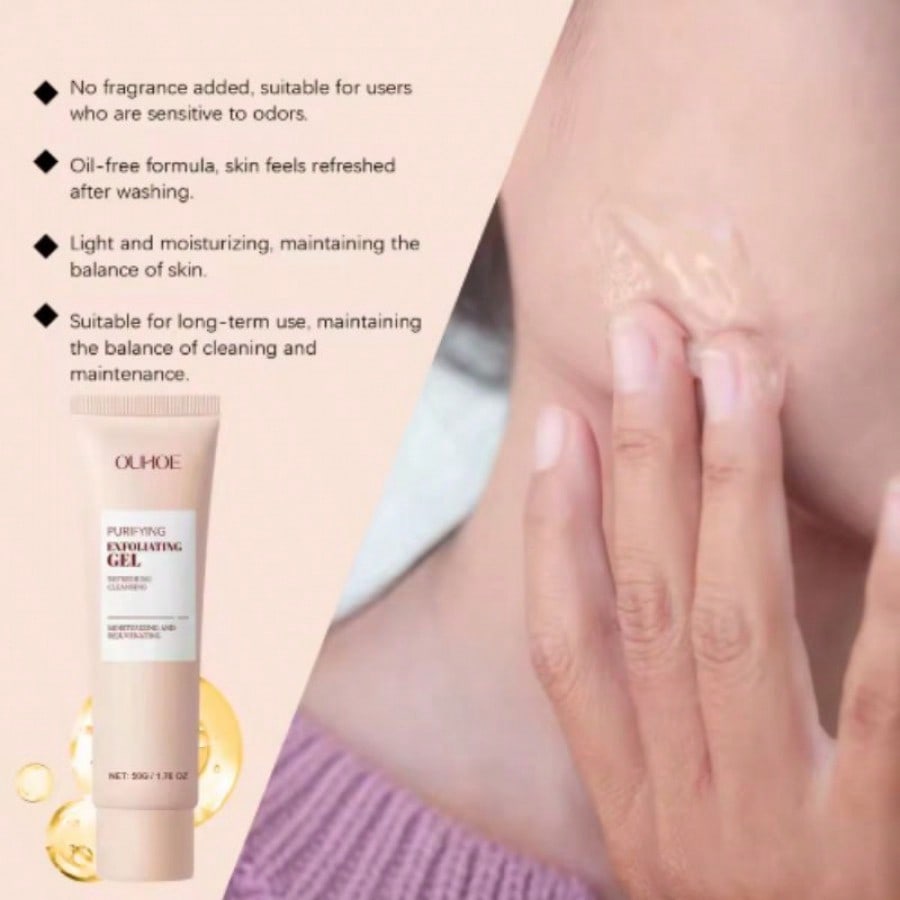 Renueva tu piel al instante con este gel exfoliante de 50g, apto para rostro y cuerpo. Su fórmula suave elimina eficazmente las células muertas y las impurezas acumuladas, revelando una piel más suave, lisa y luminosa. Ayuda a desobstruir los poros y mejora la absorción de tus cremas hidratantes. Su uso regular refina la textura de la piel, dejándola fresca y rejuvenecida sin causar irritación.