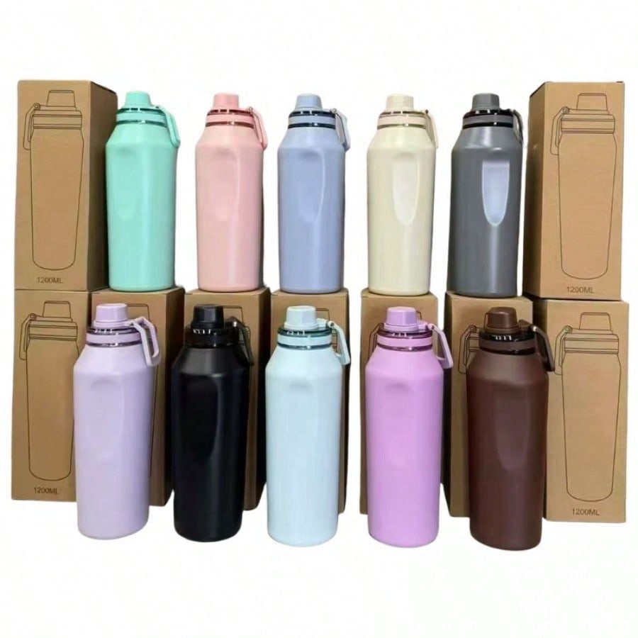 Maxima capacidad para atletas. Botella de 1200ml de acero inoxidable con acabado en polvo de alta resistencia. Mantiene grandes cantidades de liquido frio por horas. Boca ancha para hielo y limpieza facil. Asa de transporte robusta. Diseñada para durar toda la vida.