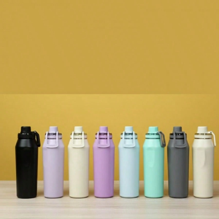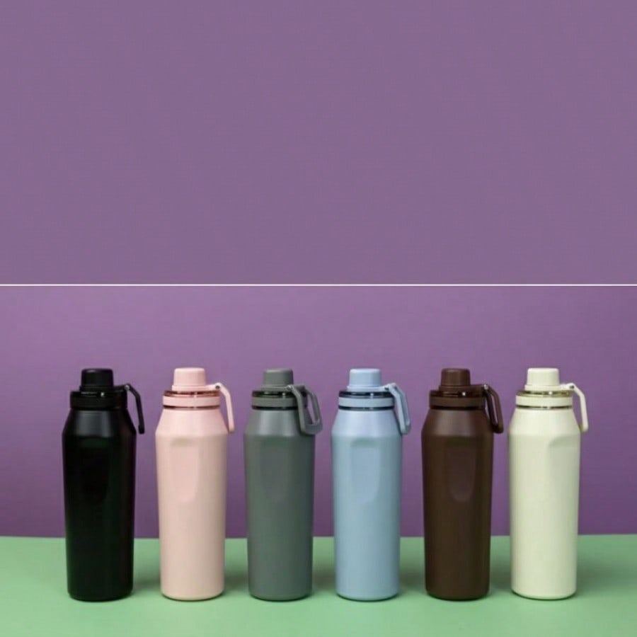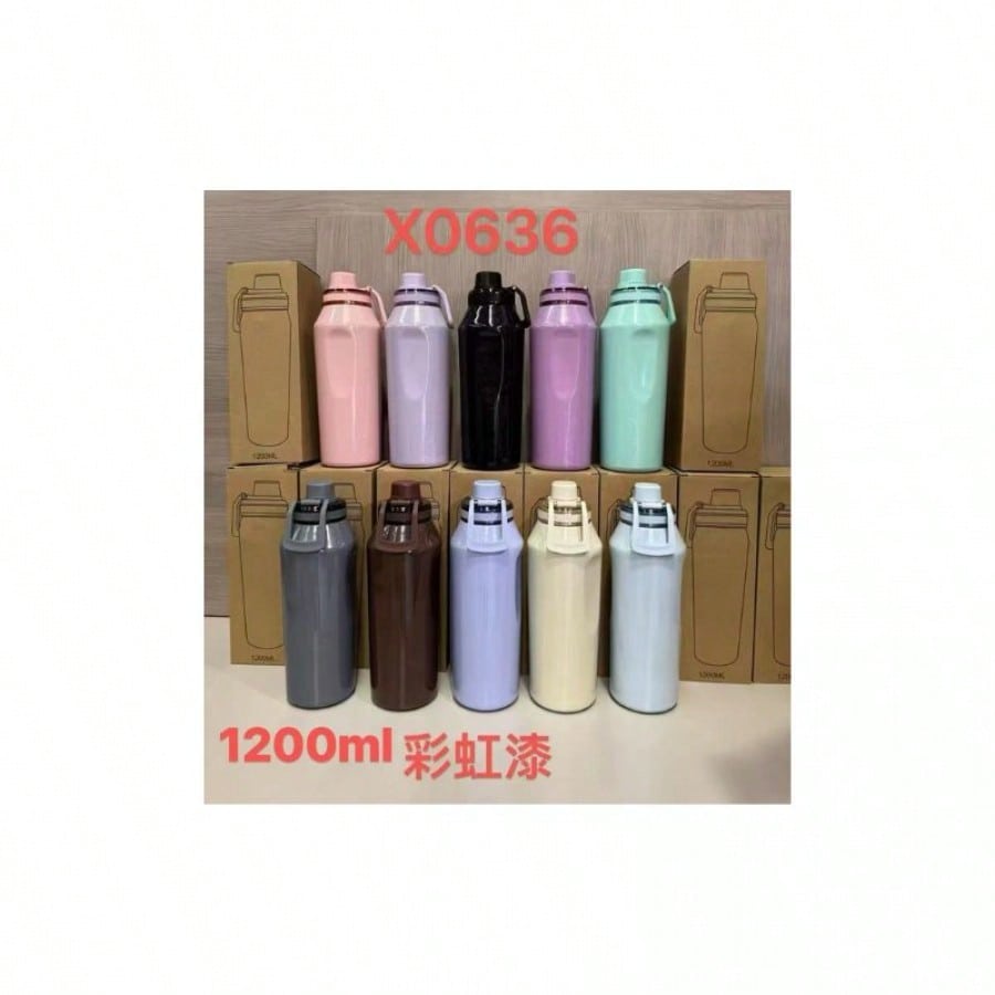 Gran capacidad y color. Botella de 1200ml de acero inoxidable con diseño arcoiris tornasol. Ideal para quienes beben mucha agua y quieren lucir bien haciendolo. Aislamiento de doble pared, libre de condensacion. Tapa segura con asa para llevar facilmente.