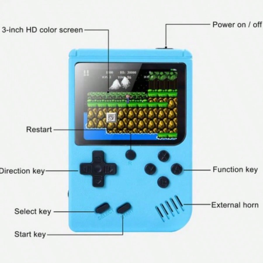 Revive la nostalgia y diviertete en cualquier lugar con esta encantadora consola de videojuegos portatil en color. Equipada con una pantalla a color HD de 3 pulgadas, ofrece una experiencia visual vibrante y comoda.[1] Incluye una biblioteca de 400 juegos clasicos retro preinstalados, garantizando horas de entretenimiento sin necesidad de cartuchos ni descargas. Su diseño compacto y ligero cabe perfectamente en tu bolsillo, ideal para viajes o momentos de espera.[1][2][3] Cuenta con una bateria recargable de larga duracion y la opcion de conectarse a la TV mediante cable AV, permitiendote disfrutar de la accion en la pantalla grande.[1][3] Es el regalo perfecto para niños y adultos que aman lo retro.
