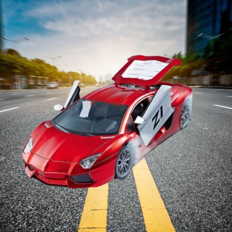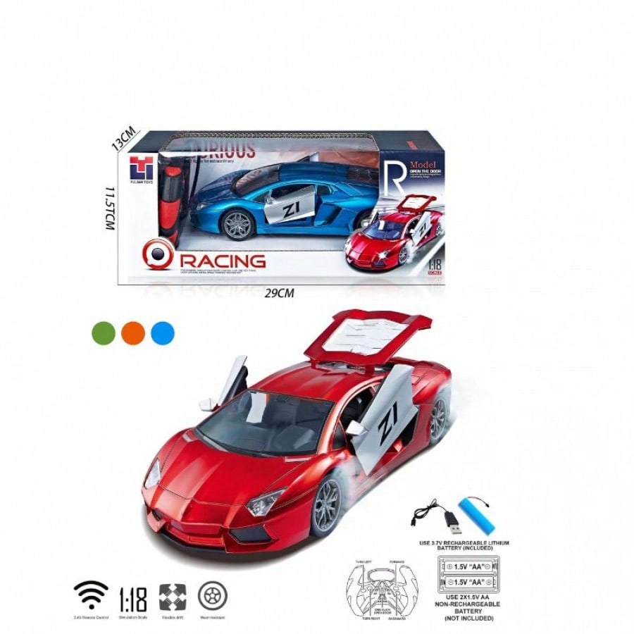 Siente la velocidad con este espectacular auto deportivo a control remoto en color rojo intenso. Su diseño aerodinamico esta inspirado en los grandes superdeportivos, destacando por sus puertas funcionales tipo tijera y cubierta de motor que se abren, brindando una experiencia de juego realista y emocionante. El mando a distancia permite una conduccion fluida en todas las direcciones, ideal para realizar carreras en casa o exteriores sobre superficies planas. Fabricado con plastico resistente a impactos, este coche RC es duradero y seguro para los niños. Es el obsequio ideal para cumpleaños o fechas especiales, fomentando la coordinacion y la diversion al maximo.