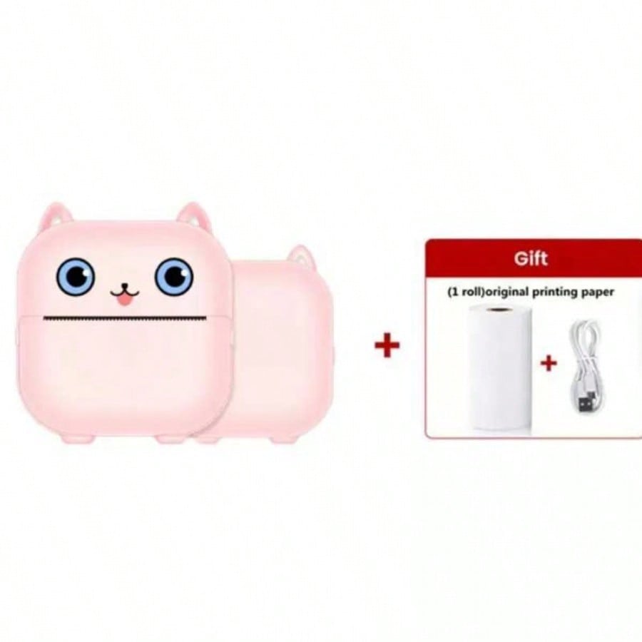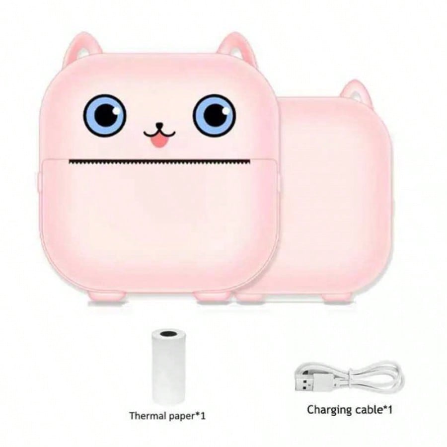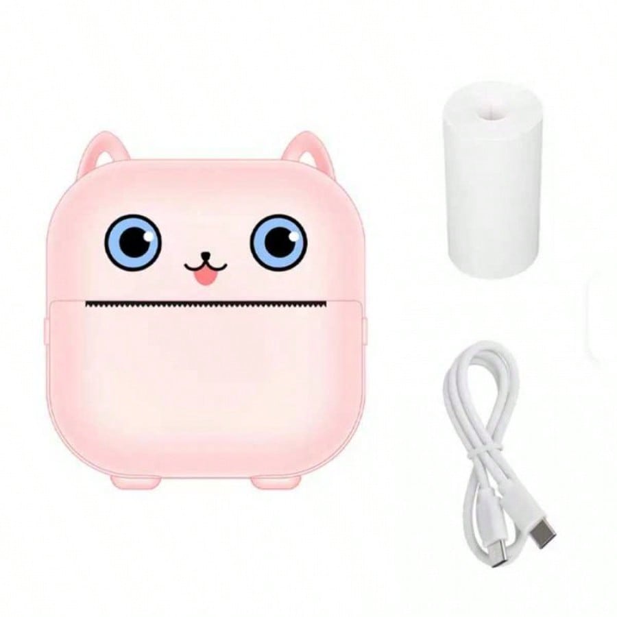 Imprime tus recuerdos y notas al instante con esta adorable mini impresora termica portatil en forma de gato color rosa. Su tecnologia de impresion termica elimina la necesidad de tinta o toner, permitiendote imprimir fotos en blanco y negro, etiquetas, listas de tareas, codigos QR y apuntes de estudio directamente desde tu celular via Bluetooth. Es compacta y ligera, ideal para llevar en el bolsillo o la mochila. Compatible con Android e iOS a traves de una aplicacion facil de usar, esta impresora es perfecta para estudiantes, amantes de las manualidades y para organizar tu dia a dia con estilo. Incluye un rollo de papel termico para que empieces a imprimir de inmediato. Su bateria recargable te ofrece la libertad de usarla en cualquier lugar sin cables.