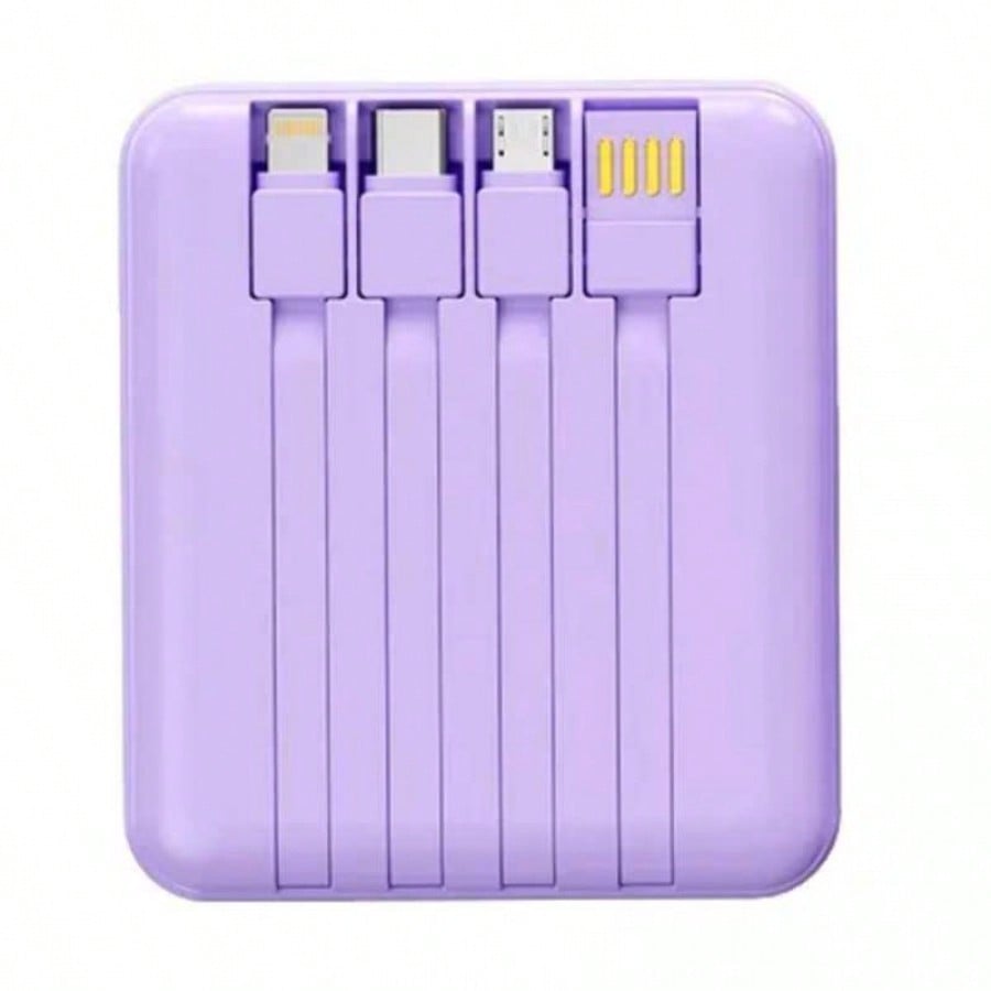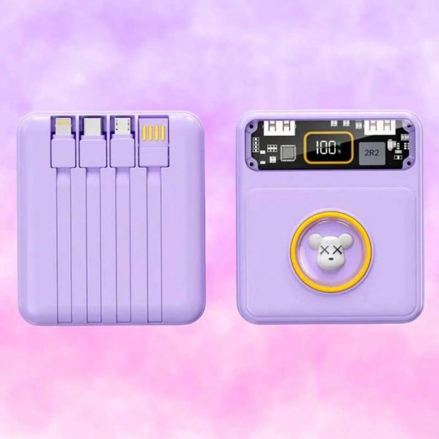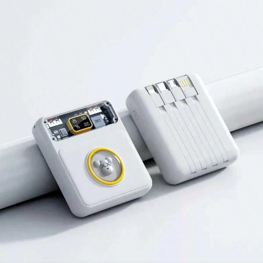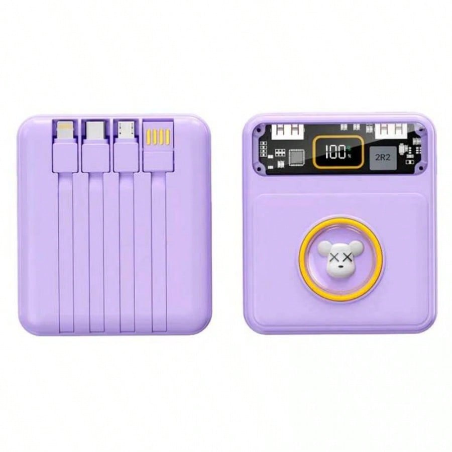 Mantente siempre conectado y con estilo con esta bateria externa de 10000mAh de alta capacidad. Su diseño unico combina colores pastel con una ventana transparente tecnologica y una pantalla LED digital que indica el nivel exacto de energia restante. Lo mas practico es su sistema de cables integrados, que te permite cargar multiples dispositivos sin necesidad de cargar accesorios adicionales en tu bolso. Con soporte para carga rapida de hasta 22.5W y multiples puertos de entrada y salida, es capaz de recargar tus equipos en tiempo record. Es la solucion definitiva para viajeros y usuarios intensivos que buscan eficiencia, rapidez y portabilidad en un solo dispositivo compacto y elegante.