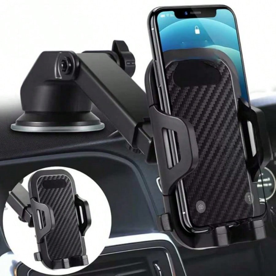 Viaja seguro y manten tu teléfono siempre a la vista con este soporte universal para auto de alta resistencia. Equipado con una ventosa de succión potente y lavable, se fija con firmeza al tablero o parabrisas de tu vehículo, resistiendo vibraciones y baches. Su brazo extensible te permite personalizar el ángulo de visión ideal, ya sea vertical u horizontal, para seguir el GPS o gestionar llamadas sin perder la atención en el camino. El soporte cuenta con un elegante acabado texturizado tipo fibra de carbono y abrazaderas laterales acolchadas que sujetan tu dispositivo con seguridad sin dañarlo. Es compatible con una amplia gama de tamaños de smartphones, convirtiéndose en el copiloto perfecto para tus trayectos diarios o viajes largos.