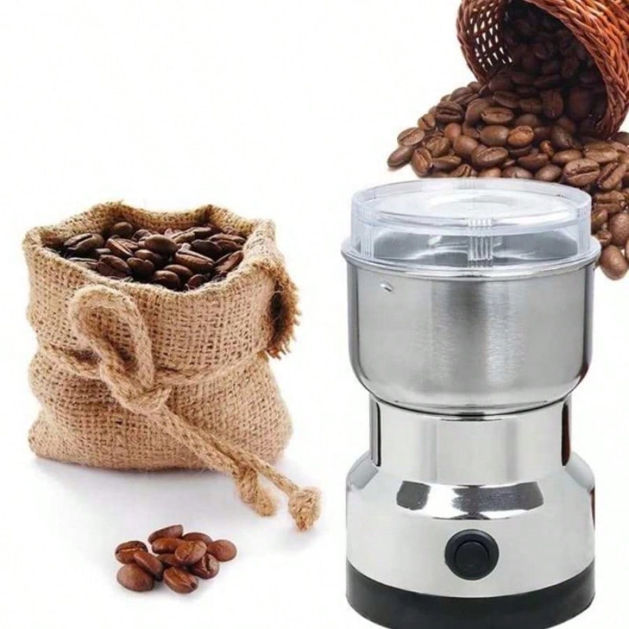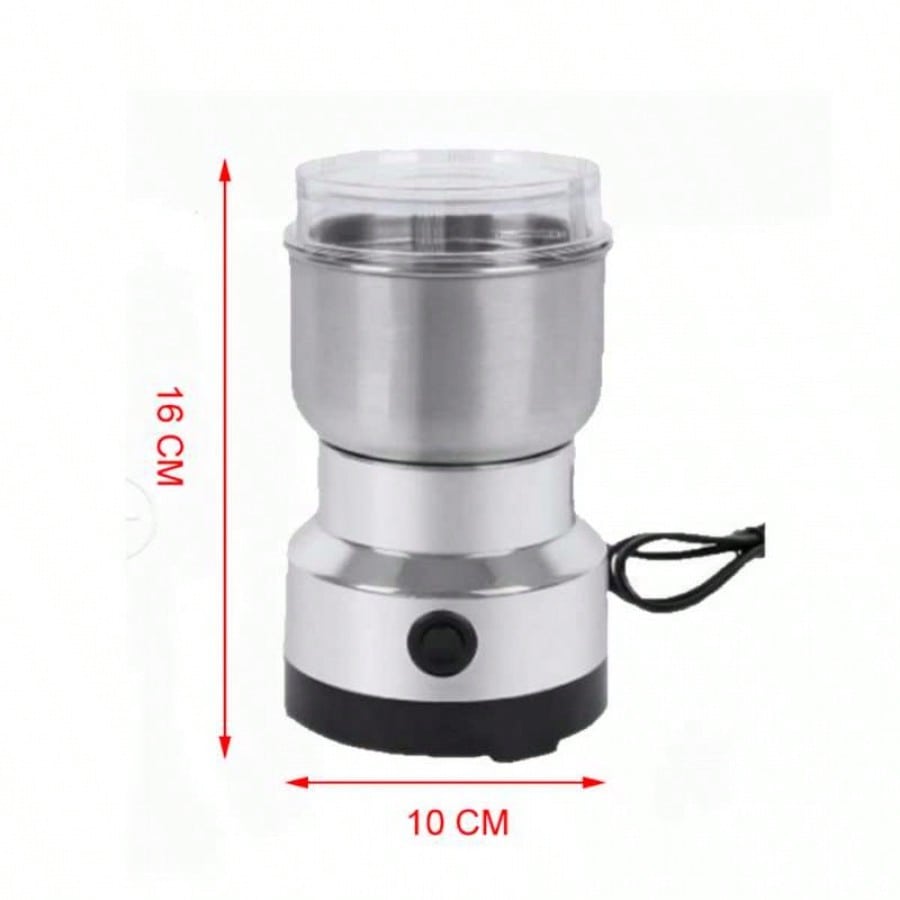 Eleva el nivel de tu cocina con este molino electrico multifuncional, diseñado para los amantes de los ingredientes frescos. Su robusta construccion en acero inoxidable no solo le da una apariencia elegante y moderna, sino que asegura una larga vida util y una limpieza sencilla. Equipado con cuchillas afiladas y un motor eficiente, es capaz de pulverizar granos de cafe, especias, nueces, semillas y cereales en cuestion de segundos. Su operacion es sumamente intuitiva gracias al boton de encendido de un solo toque, permitiendote controlar el grosor de la molienda segun el tiempo de pulsado. La tapa transparente te ofrece visibilidad total del proceso para obtener la textura deseada. Compacto y potente, es el accesorio ideal para preparar desde el cafe de la mañana hasta tus propias mezclas de condimentos caseros.