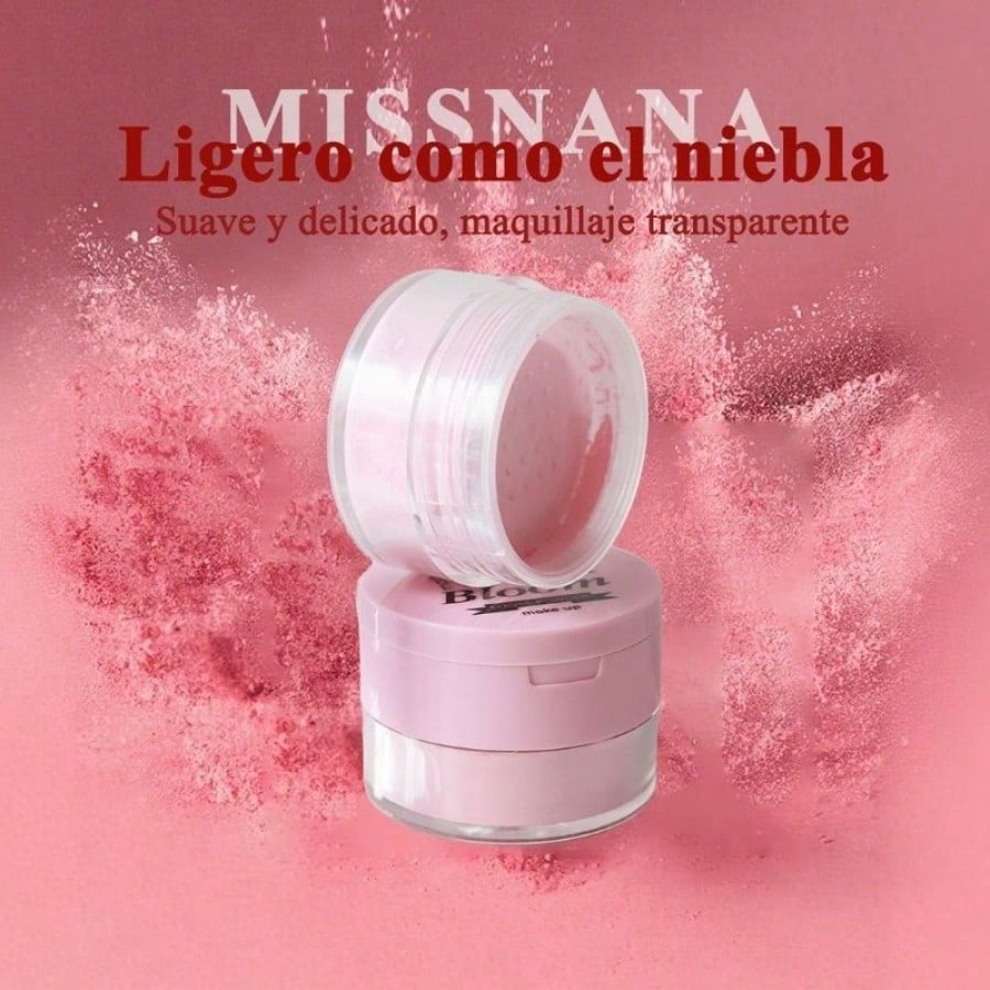 "1. Alta temperatura, larga duración y resistente al sudor, ideal para el clima cálido y húmedo de México Su fórmula está optimizada para el clima cálido de México, garantizando que el maquillaje se mantenga durante 6 horas sin desteñirse ni volverse grasoso. Incluso al sudar en mercados o fiestas, mantiene un acabado mate suave, evitando la vergüenza de un maquillaje graso y pastoso. 2. Textura ligera y suave, ideal para pieles con tendencia al acné El polvo es tan fino como el aire, minimizando los poros y previniendo la formación de pliegues. No obstruye los poros ni siquiera en climas cálidos, a la vez que proporciona un efecto suave para una tez natural e impecable, que combina a la perfección con el look de maquillaje ligero y ligero que se antoja popular en México. 3. Envase rosa y transparente: éxito garantizado en redes sociales El diseño fresco y atractivo del frasco rosa y transparente se alinea perfectamente con la tendencia ""sweet beauty"" en TikTok/Instagram. Publicar fotos con el hashtag #MexicanMakeupSettings maximizará tus posibilidades de conquistar a las jóvenes entusiastas de la belleza. 4. Compacto y portátil + Tamiz para controlar el polvo, sin complicaciones para retoques El mini frasco cabe directamente en una caja roja importada, y el tamiz incorporado controla con precisión la cantidad de polvo dispensado, perfecto para retoques rápidos antes de citas o compras, eliminando la necesidad de herramientas adicionales y evitando un aspecto opaco y sin vida. 5. Multiusos, económico Puede usarse como polvo fijador para controlar la grasa o aplicarse suavemente sobre las mejillas como polvo iluminador. Un solo frasco tiene dos funciones, lo que lo convierte en una opción económica para estudiantes y jóvenes profesionales mexicanos, satisfaciendo sus necesidades de maquillaje para diversas ocasiones. 6. Ingredientes seguros y que cumplen con las normas, apto para piel sensible Cumple con las normas de seguridad de la NOM mexicana para el cuidado de la piel, libre de aditivos que causan acné y sensibilización. No causa enrojecimiento ni escozor en pieles sensibles o grasas durante los cambios estacionales, equilibrando el poder fijador con la suavidad."