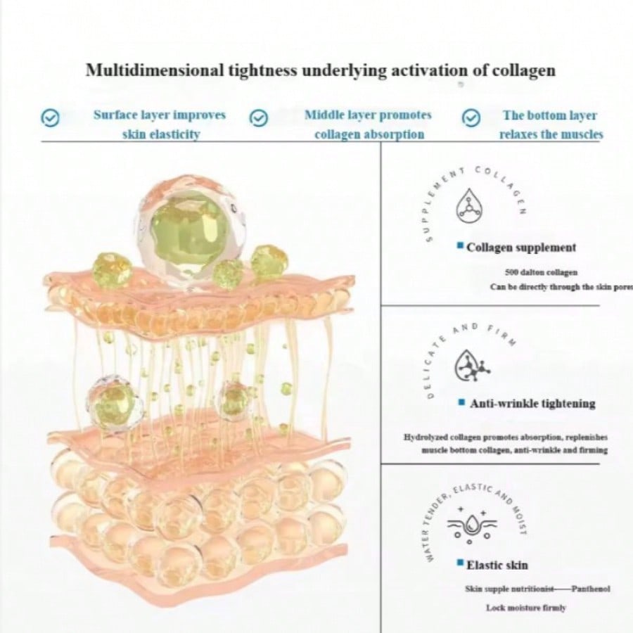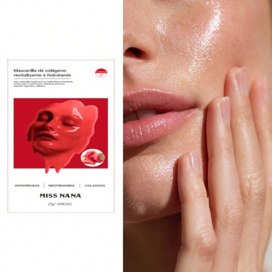 "1. Colágeno de alta concentración para combatir con precisión las arrugas inducidas por el sol: Esta mascarilla, enriquecida con colágeno altamente activo, combate la sequedad y las líneas de expresión (arrugas de la frente, surcos nasolabiales y patas de gallo) causadas por los fuertes rayos UV de México. Tras su aplicación, rellena rápidamente las líneas de expresión, dejándola firme y tersa. A la vez, repara la piel seca y dañada tras la exposición al sol, abordando el problema principal de la aparición de arrugas y el aspecto envejecido de la piel con el calor, lo que la convierte en un producto antiedad esencial para las mujeres locales. 2. Iluminador instantáneo en 3 minutos, una emergencia festiva para una apariencia juvenil: Con las frecuentes fiestas y fechas de mercado en México, esta mascarilla ilumina al instante el tono de la piel y disminuye la opacidad causada por la falta de sueño, dejándola con un brillo radiante y radiante. Un tratamiento de emergencia de 15 minutos antes de salir crea fácilmente un look natural y juvenil, perfecto para fotos publicadas en TikTok con el hashtag #MexicanBeautyFavorites, lo que lo convierte en un ""acelerador de belleza"" para eventos sociales. 3. Mascarilla Refrescante y Transpirable, Sin Congestión Ni Sudor en Climas Cálidos Especialmente diseñada para el clima cálido de México, esta mascarilla refrescante de seda es delgada, transpirable y no pegajosa. Proporciona una sensación refrescante durante la aplicación, previniendo brotes y sensación pegajosa en climas cálidos. La mascarilla es lo suficientemente fuerte como para retener la esencia, permitiendo que el colágeno y otros nutrientes penetren profundamente, proporcionando hidratación y beneficios antienvejecimiento. 4. Alta Rentabilidad con 5 Mascarillas, Antienvejecimiento Diario sin Sentir que Gastas Demasiado 5 mascarillas envasadas individualmente son ideales para tratamientos antienvejecimiento diarios de 2 a 3 veces por semana, o para abastecer (las mujeres mexicanas suelen abastecerse). El precio por lámina es accesible, con un ahorro del 90% en comparación con los tratamientos antiedad en salones de belleza tradicionales, lo que la hace fácilmente accesible para estudiantes y profesionales. El uso constante notará una reducción de líneas de expresión y una piel más firme. 5. Fórmula suave + Certificación conforme, segura para piel sensible Cumple con las normas mexicanas de seguridad cosmética (NOM-121), no contiene alcohol ni conservadores sensibilizantes. Enriquecida con extracto de aloe vera para calmar y estabilizar, es segura incluso para piel sensible enrojecida por la exposición al sol. Su fórmula de colágeno suave y no irritante proporciona beneficios antiedad y reparadores, lo que la hace adecuada para toda la familia. 6. Empaquetado individual para múltiples usos Cada lámina está sellada individualmente para mayor higiene y se puede guardar fácilmente en una bolsa de maquillaje: perfecta para reparar la piel dañada por el sol después de unas vacaciones en la playa, para una rápida inyección de luminosidad antes de una fiesta o para una hidratación reconfortante después del viaje al trabajo. El diseño del embalaje, simple pero sofisticado, es perfecto para sesiones fotográficas y se alinea con la preferencia de las mujeres locales por la ""estética + practicidad""."